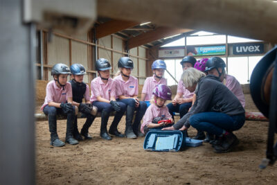 Neben einer täglichen Springreitstunde in unterschiedlichen Gruppen steht auch das Erlernen von Theorie und Praxis im Vordergrund: